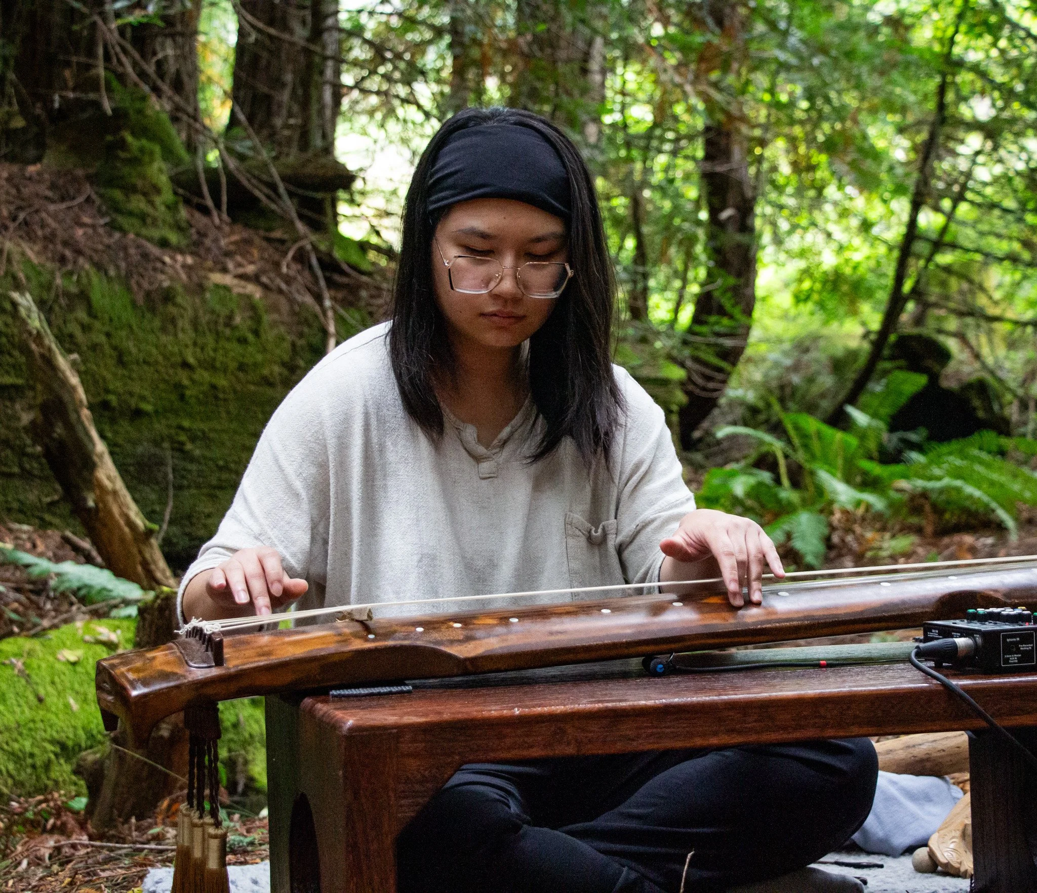 Gabby Wen mainly works with synthesizers and guqin as a musician, drawing influences from soundscapes in natural and urban environments, ritualistic music of various traditions, and aesthetics of ancient Chinese art and literature. Her works focus on subtle responses in the body incidental to each sonic event, and are created to rebalance the self in the continuously shifting world.